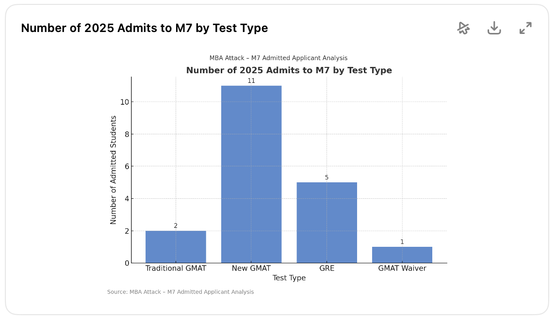 MBA Attack이 배출한 2025년 M7 합격자(중복 합격 제외 총 19명)의 시험 유형별 분포는 다음과 같습니다:
